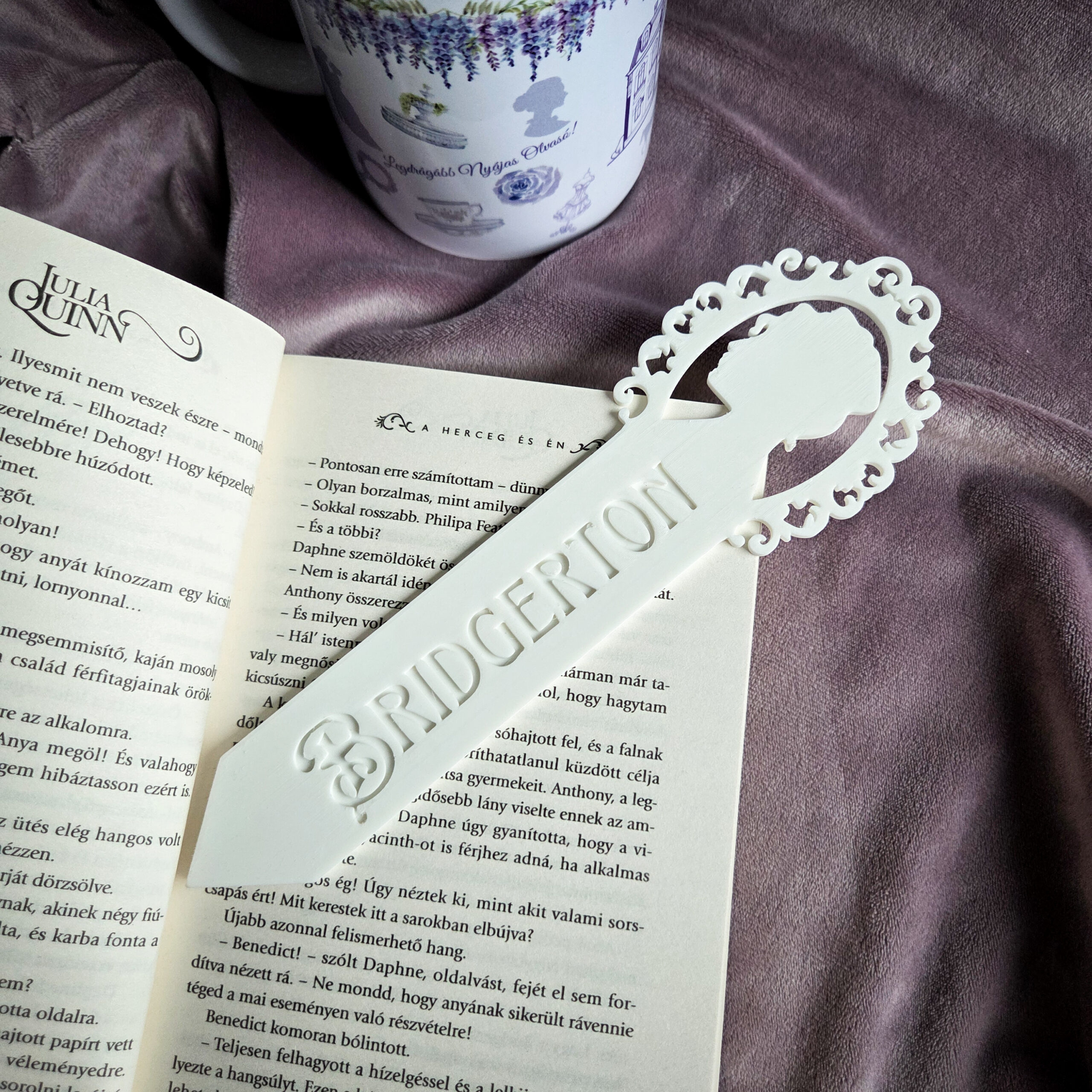 3D nyomtatással készült könyvjelző. Mérete: 20 x 3.2-6 cm